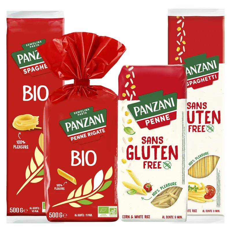 V Panzani chceme všem bez ohledu na způsob stravování nabídnout chuťový požitek z kvalitních těstovin. Proto vám nabízíme těstoviny BIO, vyrobené z ingrediencí ekologického původu, a bezlepkové těstoviny, aby si kvalitu Panzani mohli vychutnat úplně všichni. Nabídka přizpůsobená vašim preferencím, u které je neodolatelná chuť zaručena. Jakmile je jednou vyzkoušíte, už nebudete chtít měnit!